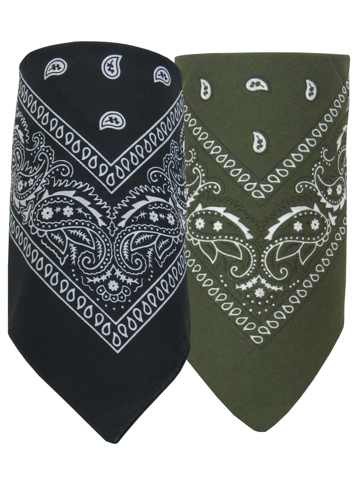 2er Set Bandana Paisley Muster Halstuch Nickituch Haarband, Schwarz - Olivgrün