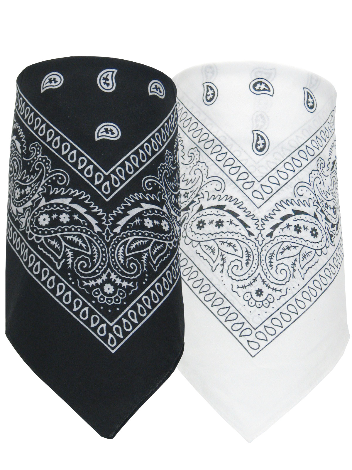 2er Set Bandana Paisley Muster Halstuch Nickituch Haarband, Schwarz - Weiss