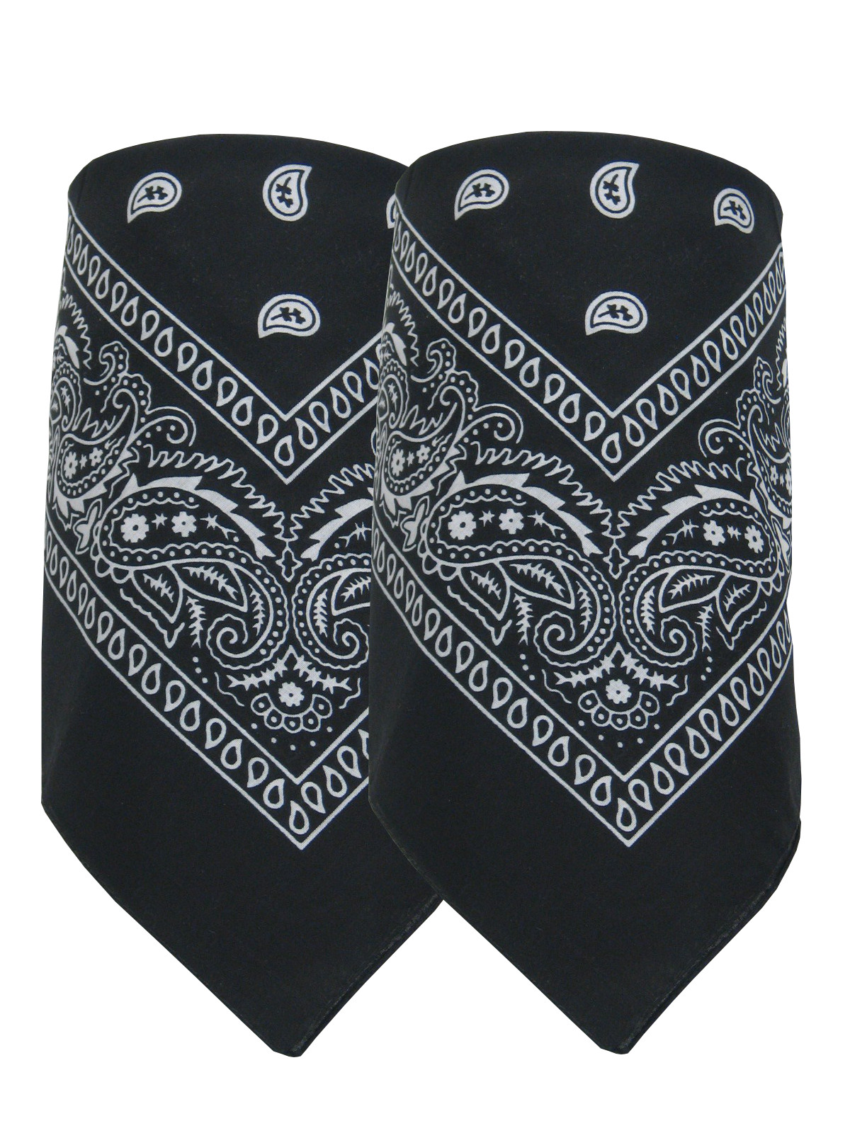 2er Set Bandana Paisley Muster Halstuch Nickituch Haarband, Schwarz