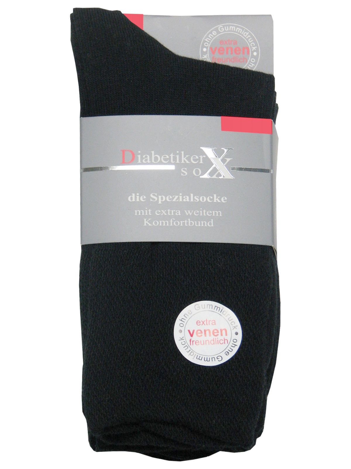 3 Paar Damen Diabetiker Socken ohne Gummi, schwarz