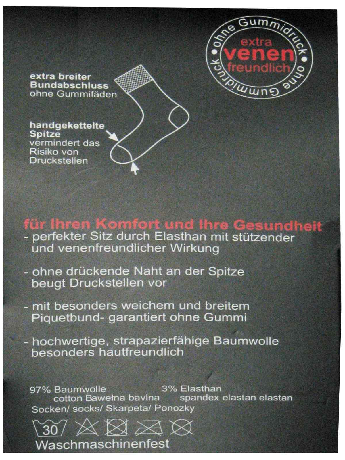 3 Paar Herren Diabetiker Socken ohne Gummi, schwarz