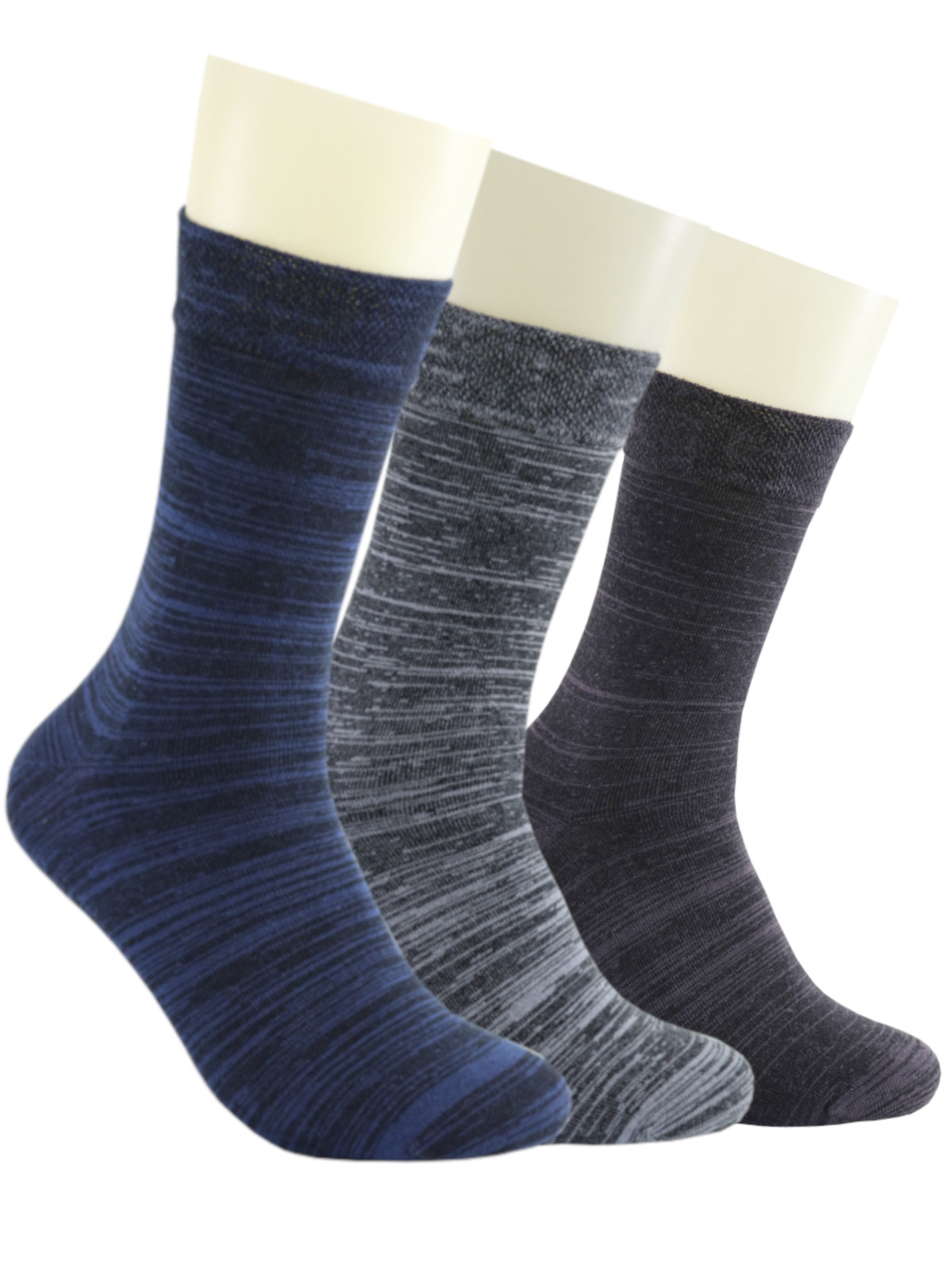 3 Paar MH Viskose Bambussocken ohne Gummidruck Meliert Schwarz Grau Blau
