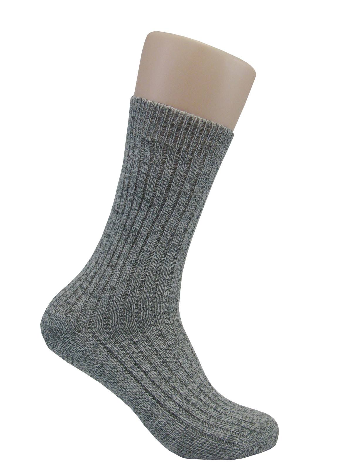 3 Paar Schafwoll- Norwegersocken mit Plüschsohle ohne Gummidruck im Abschlußrand.
