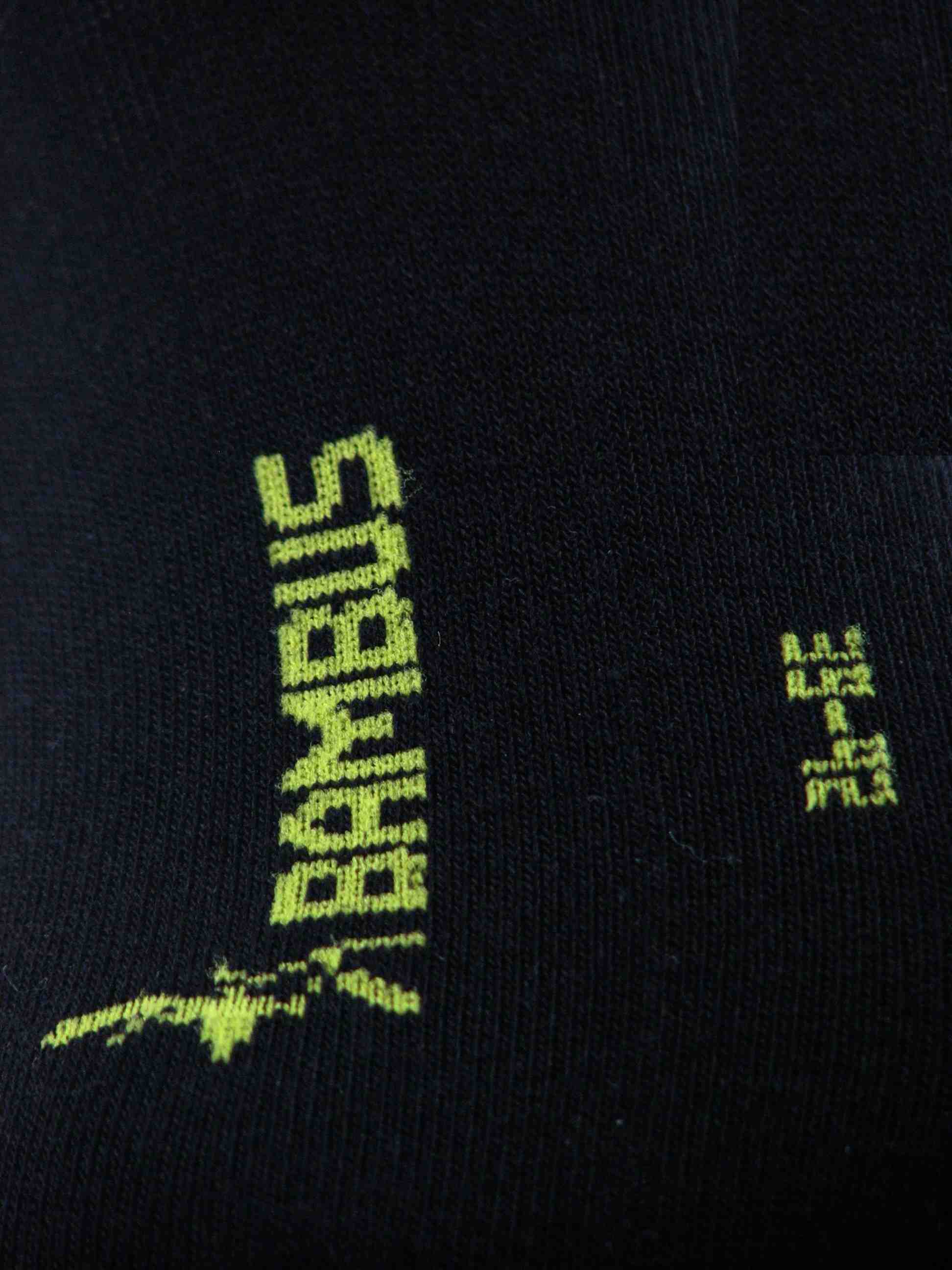 Das Wort "Bambus" sowie die Größe sind in der Fußsohle eingestrickt